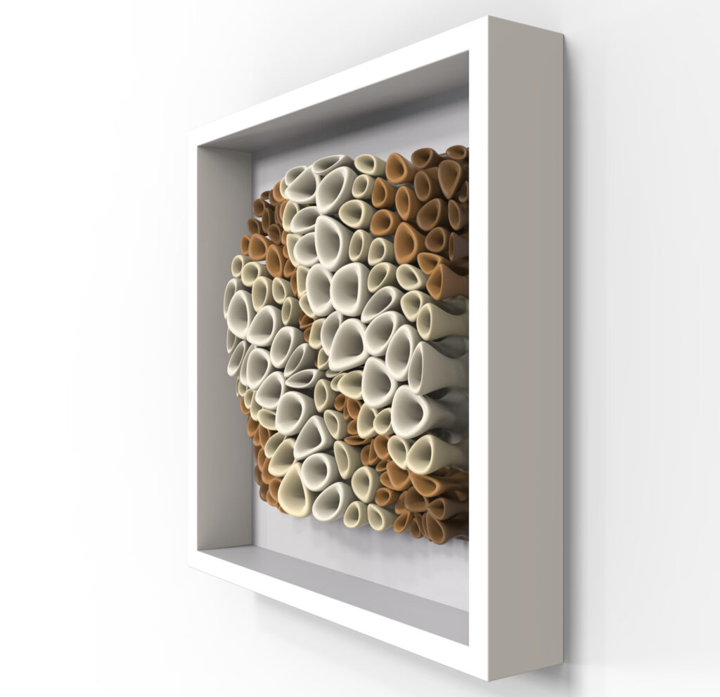 Die Korallen-Skulptur wurde mit der Software Rhino-Grashopper generiert und wird im 3D-Druckverfahren aus umweltfreundlicher PLA hergestellt. (Polylactid wird aus nachwachsenden Rohstoffen wie Maisstärke oder Zuckerrohr hergestellt).